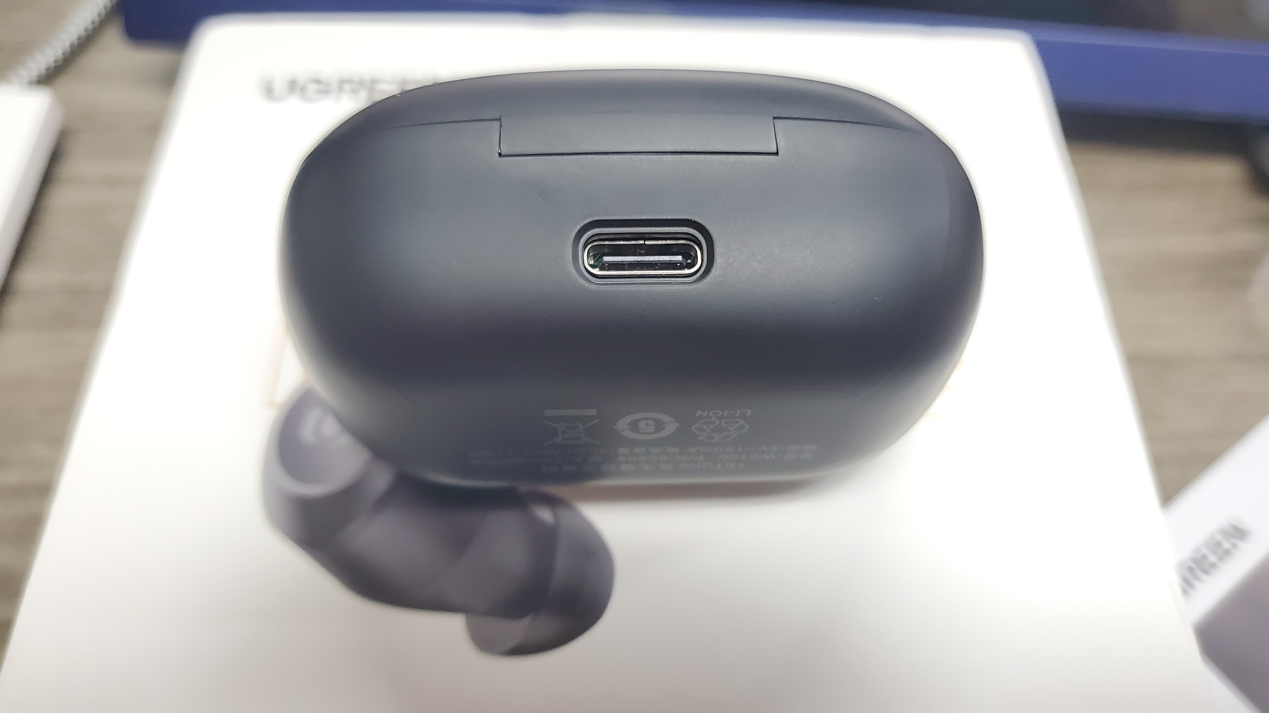 그리고 특이하게도 스펙 기재 내용으로는 마이크가 외부가 아닌, 안쪽에 충전 단자 옆의 작은 구멍으로 표시돼 있다. 조금 아리송하지만? 저 홀 외에 외부엔... LED 표시용 말고는 별도의 통화용 마이크 홀이 진짜 없다.