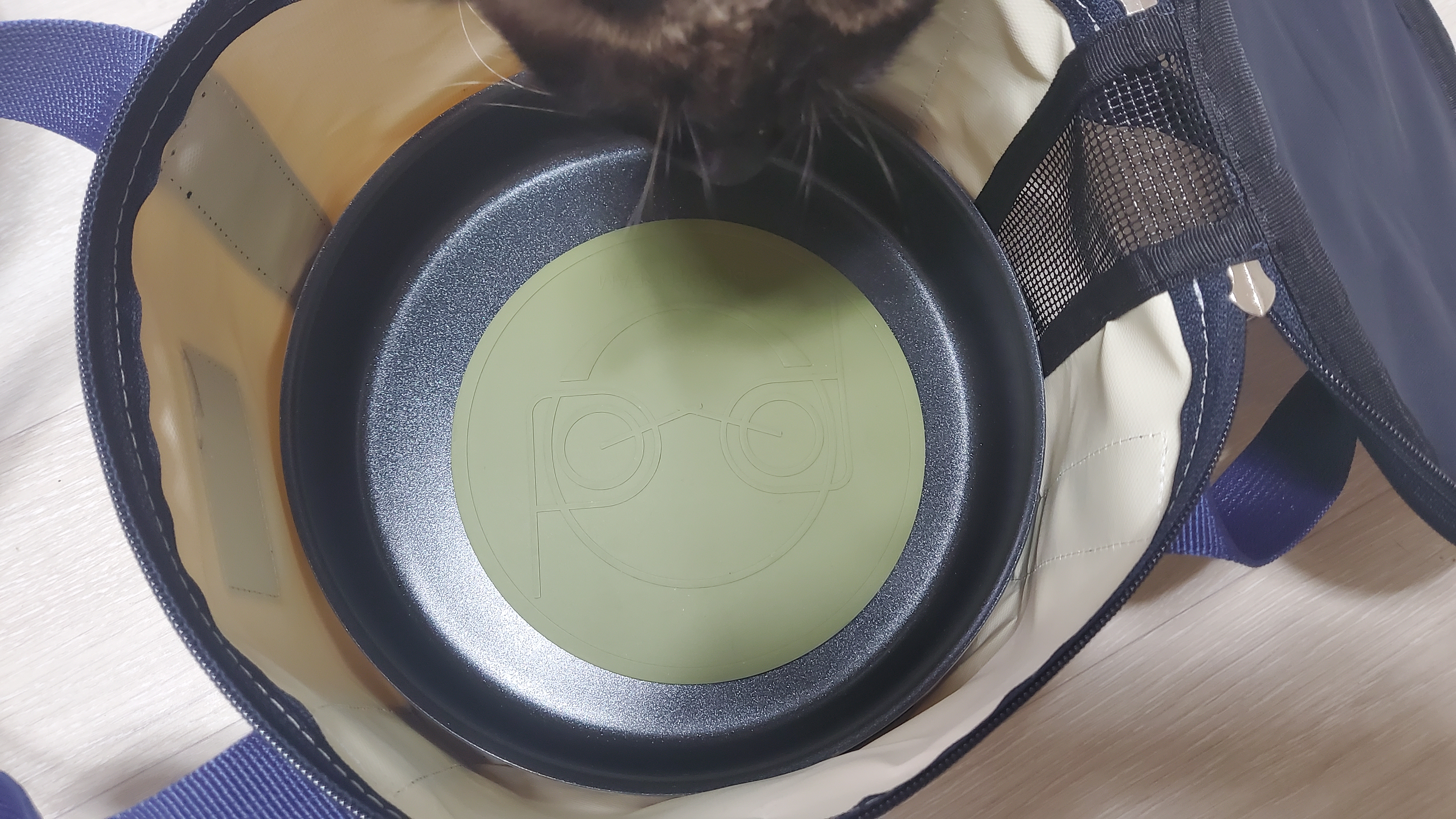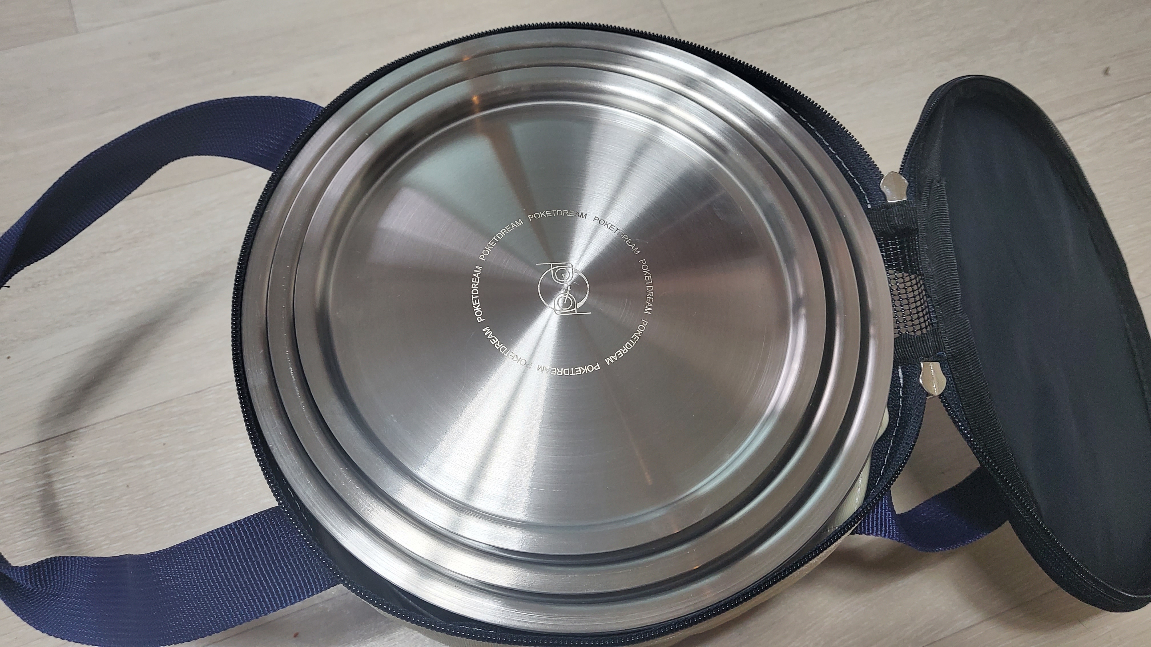 기본 냄비구성을 꺼내면 이렇게... 후라이팬에 냄비받침이 있다. 절대 저렇게 두어야 한다. 포켓드림 페이지를 보면
