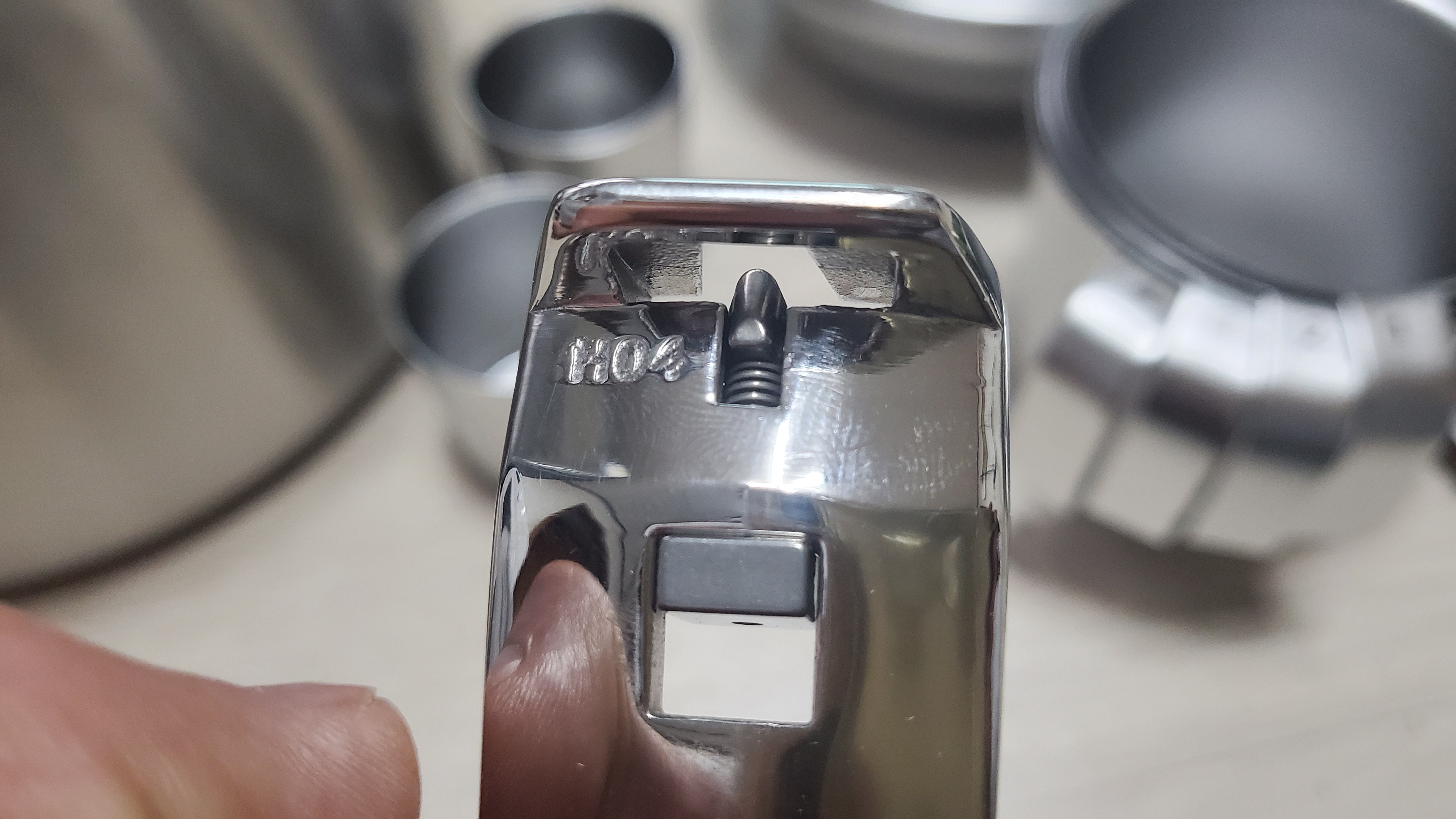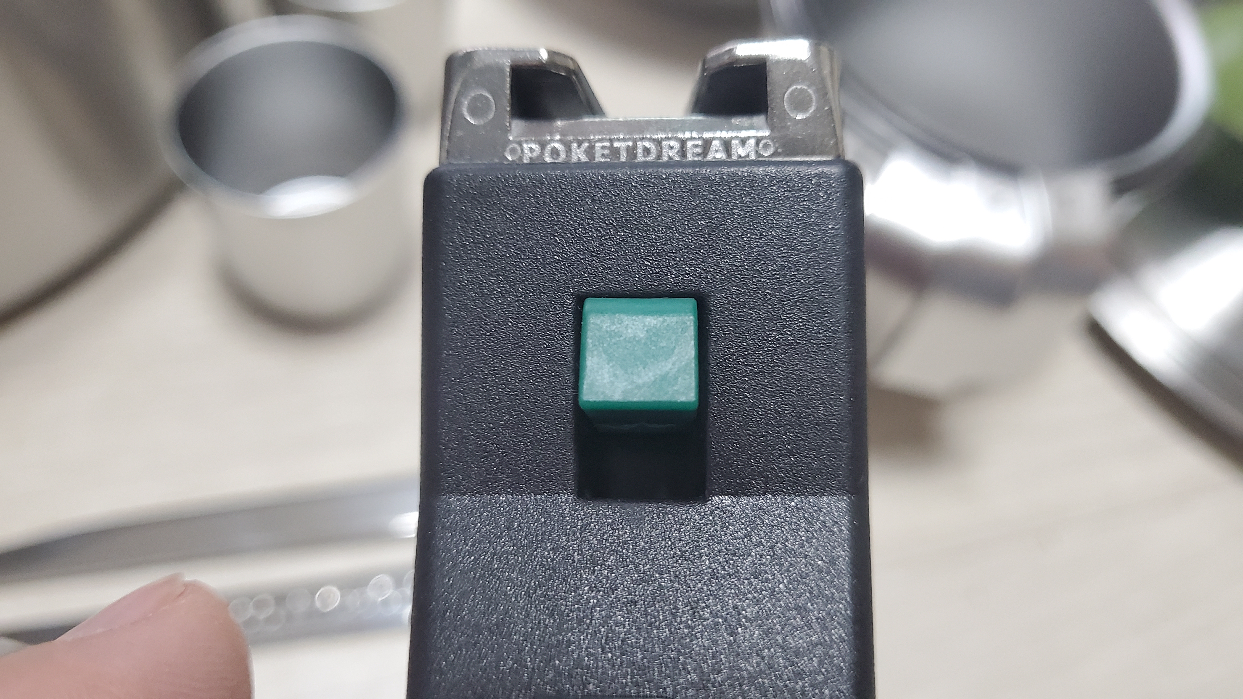 뚜껑 손잡이. 가운데 검은 부분을 왼쪽과 같이 밀어넣으면 뚜껑에 부착하여 손잡이로 쓸 수 있고, 탈거할 때에는 반대편에서 가운데 검은 부분을 밀면 공기가 들어가면서 분리가 된다. 그로 인해 뚜껑들에 손잡이 탈거가 되므로 수납이 훨씬 편해진다. 뿐만 아니라, 필요에 따라서는 저 뚜껑을 접시 대용으로도 사용 가능하니... 다목적!