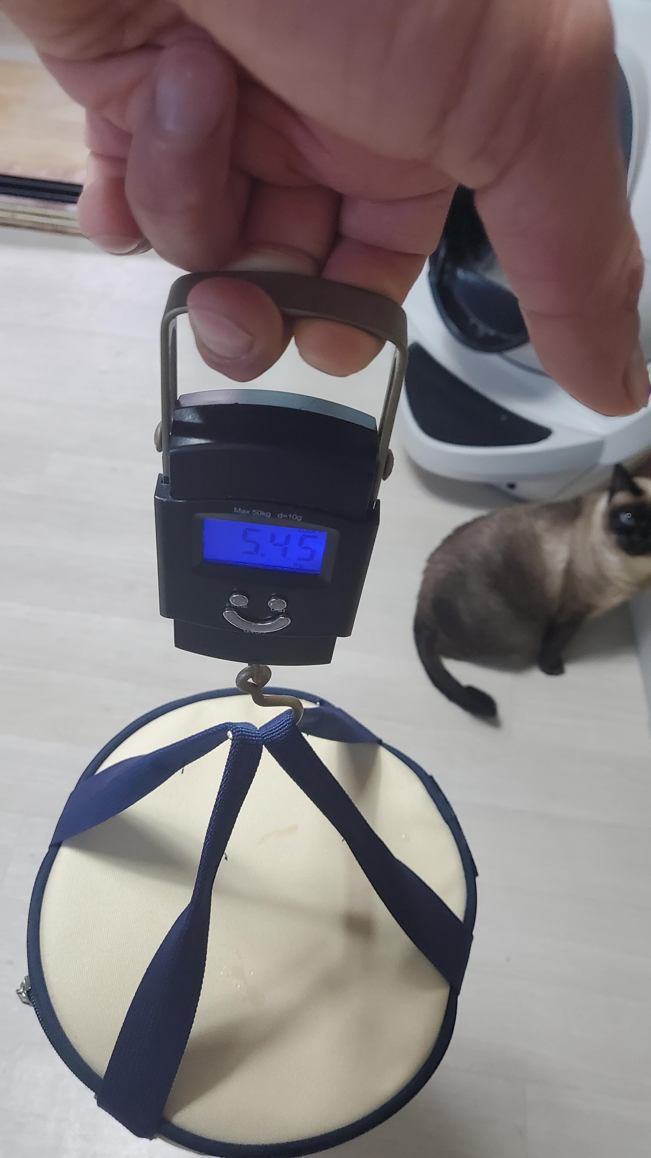 일단 가방 채로 무게를 재보니 5.45kg. 제품의 스펙에서... 모든 부속품 도합 무게가 5164g, 그리고 가방 무게가 221g으로 나와 있다. 합치면 약 5.4kg에 근접하니... 뭐 저정도 무게가 맞을 듯 하다. 5kg이 그리 가벼운 무게는 아니지만 충분히 납득할 만한 구성이므로 뭐...