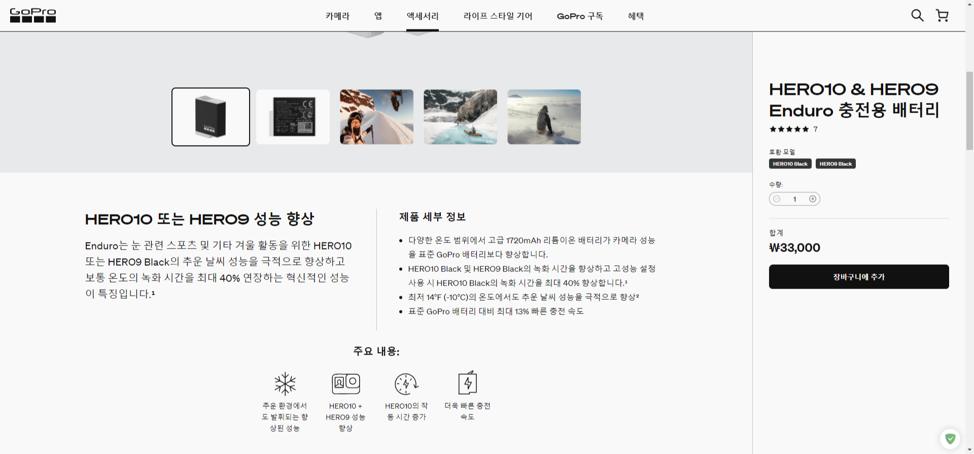 추운 것엔 어쩔 수 없다 생각하였으나, 고프로 공홈에 가니 새로운 배터리가 나왔다.