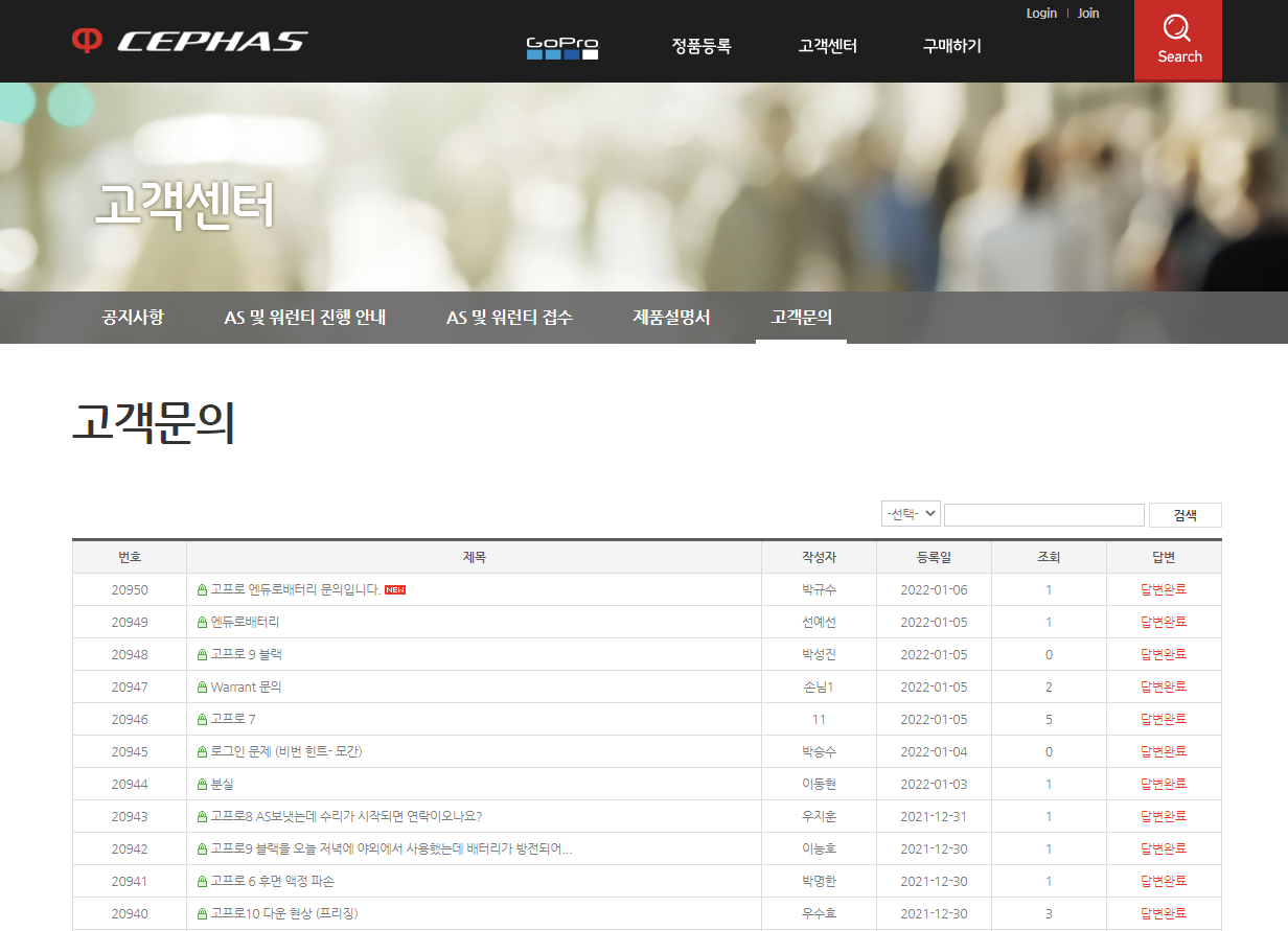 세파스에 들어가면... 고객문의 게시판에 이렇게....