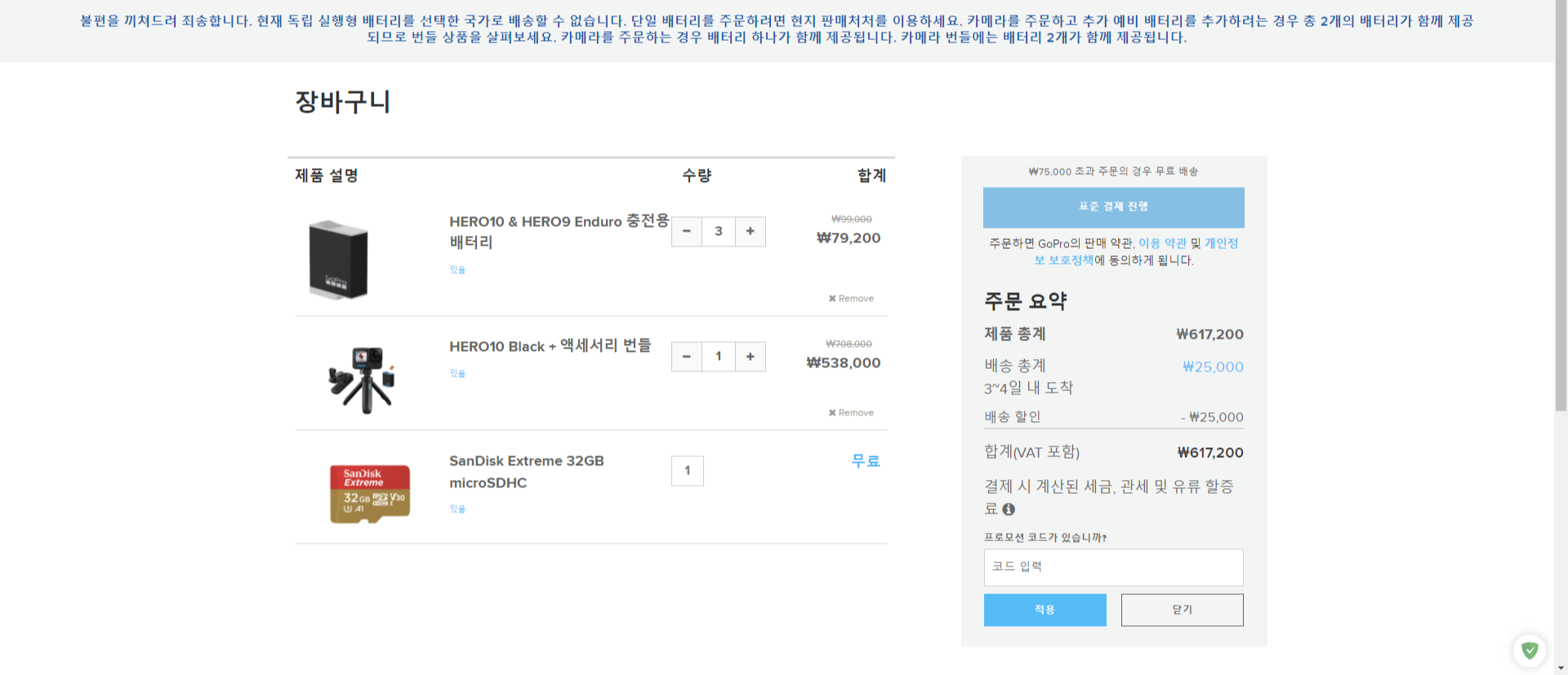 2개는 구매 가능. 그래서 결심... 고프로를 하나 더 사자(재정신이냐??) 뭐 손해보고라도 하나는 팔아야지 ㅠㅜ