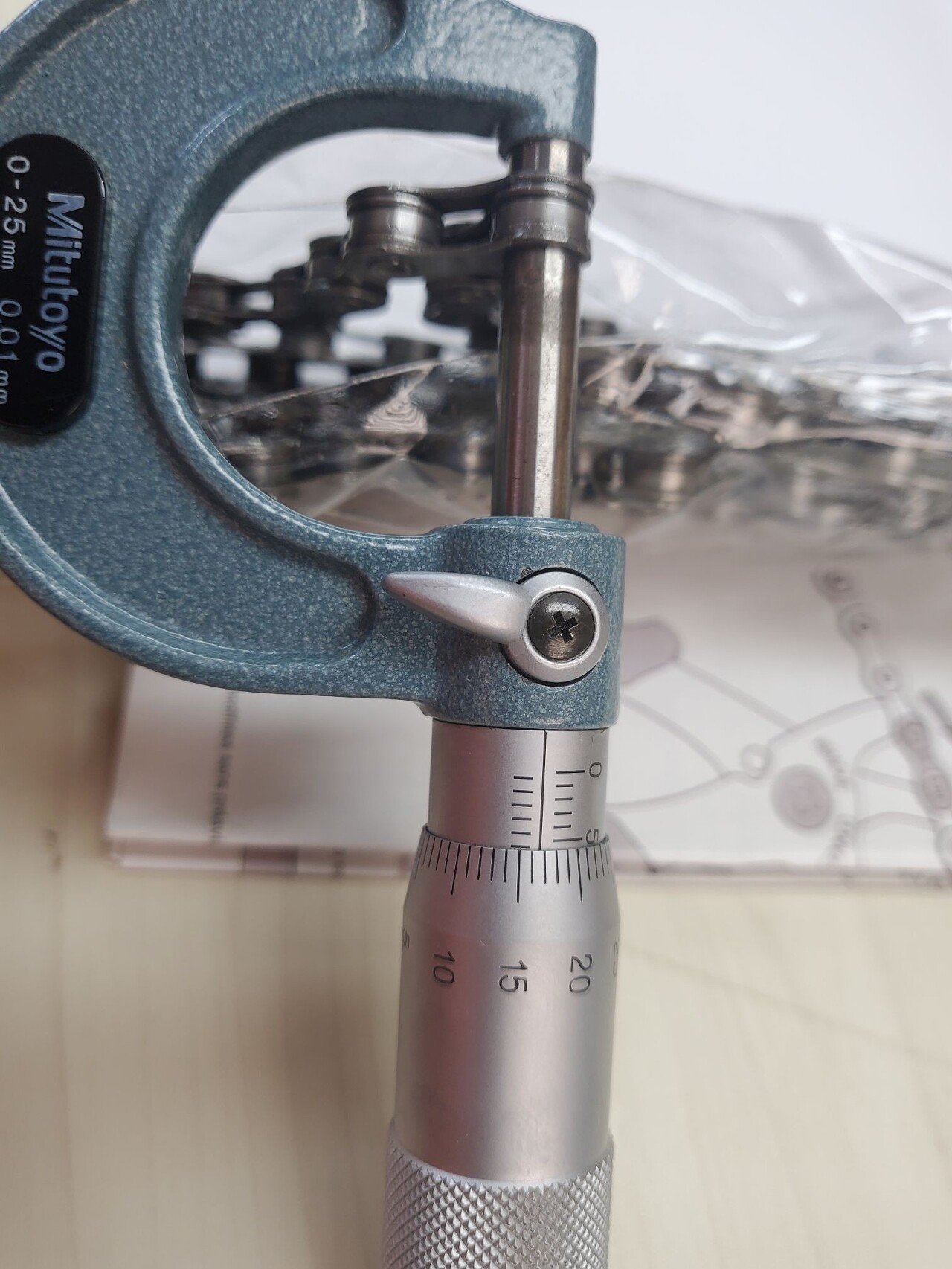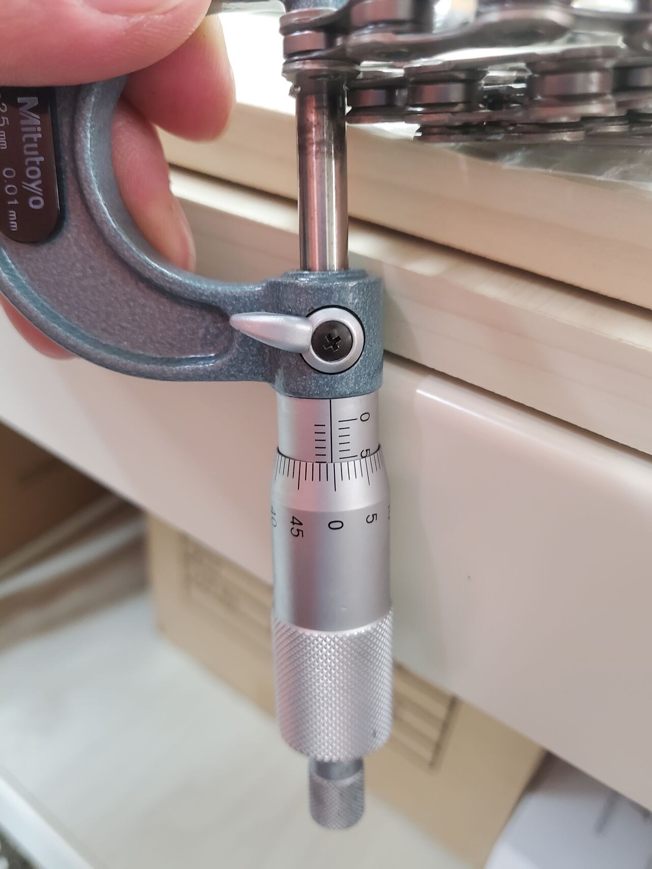 체인을 꺼내서 링크부분 두께를 재봤습니다. 정확히 5.5mm로 나옵니다.