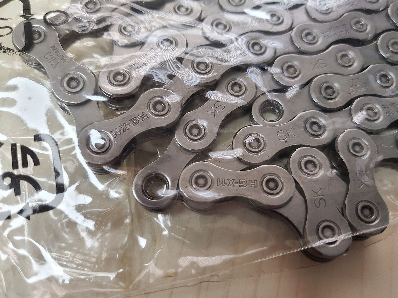 정품 입니다. 링크는 은색에... 시마노가 적혀있고, 체인의 마지막 베어링을 보면 틈이 없어서 베어링으로 먼지 유입을 최소화한 게 보입니다.