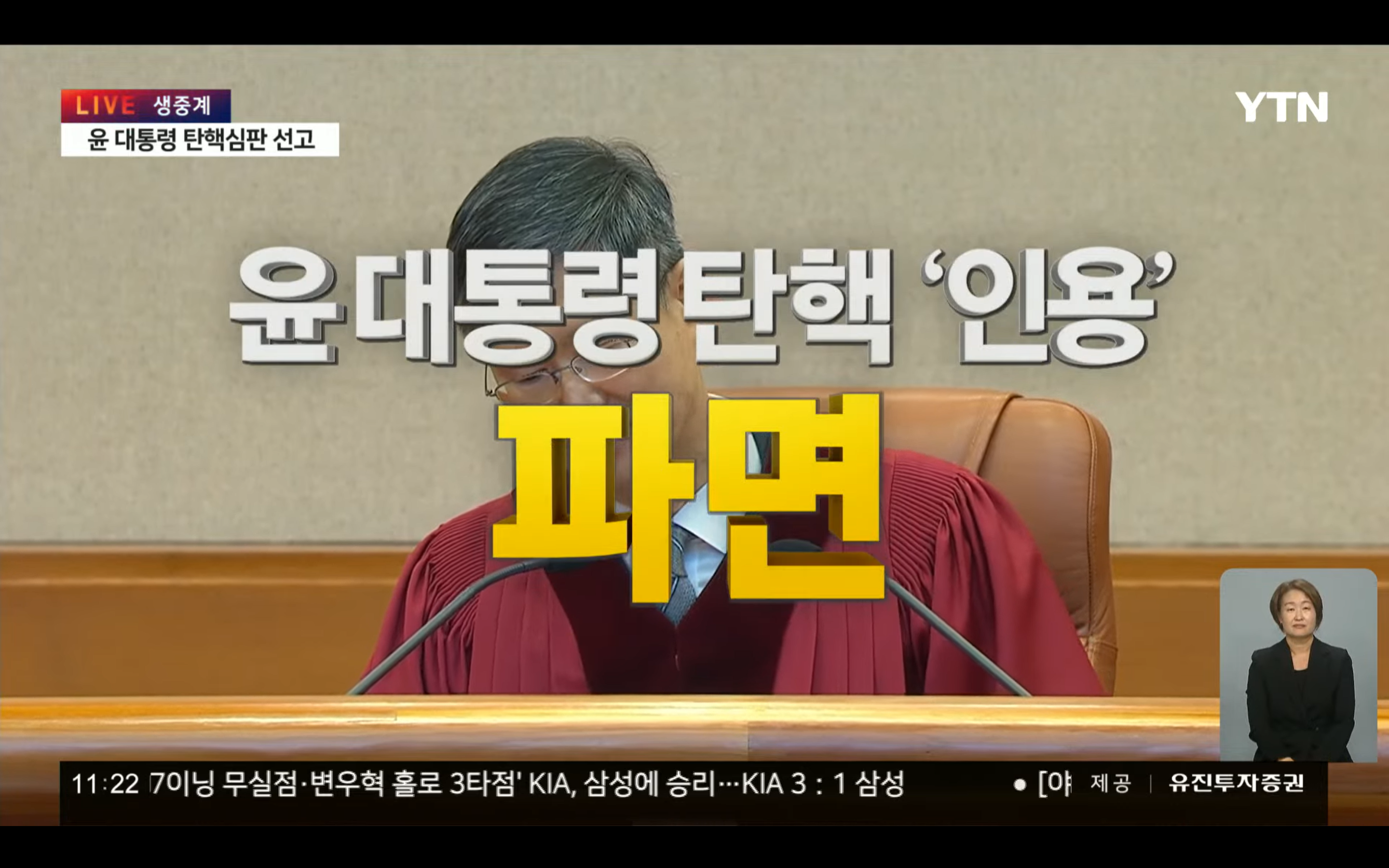 윤석열 대통령 탄핵 인용 "파면"