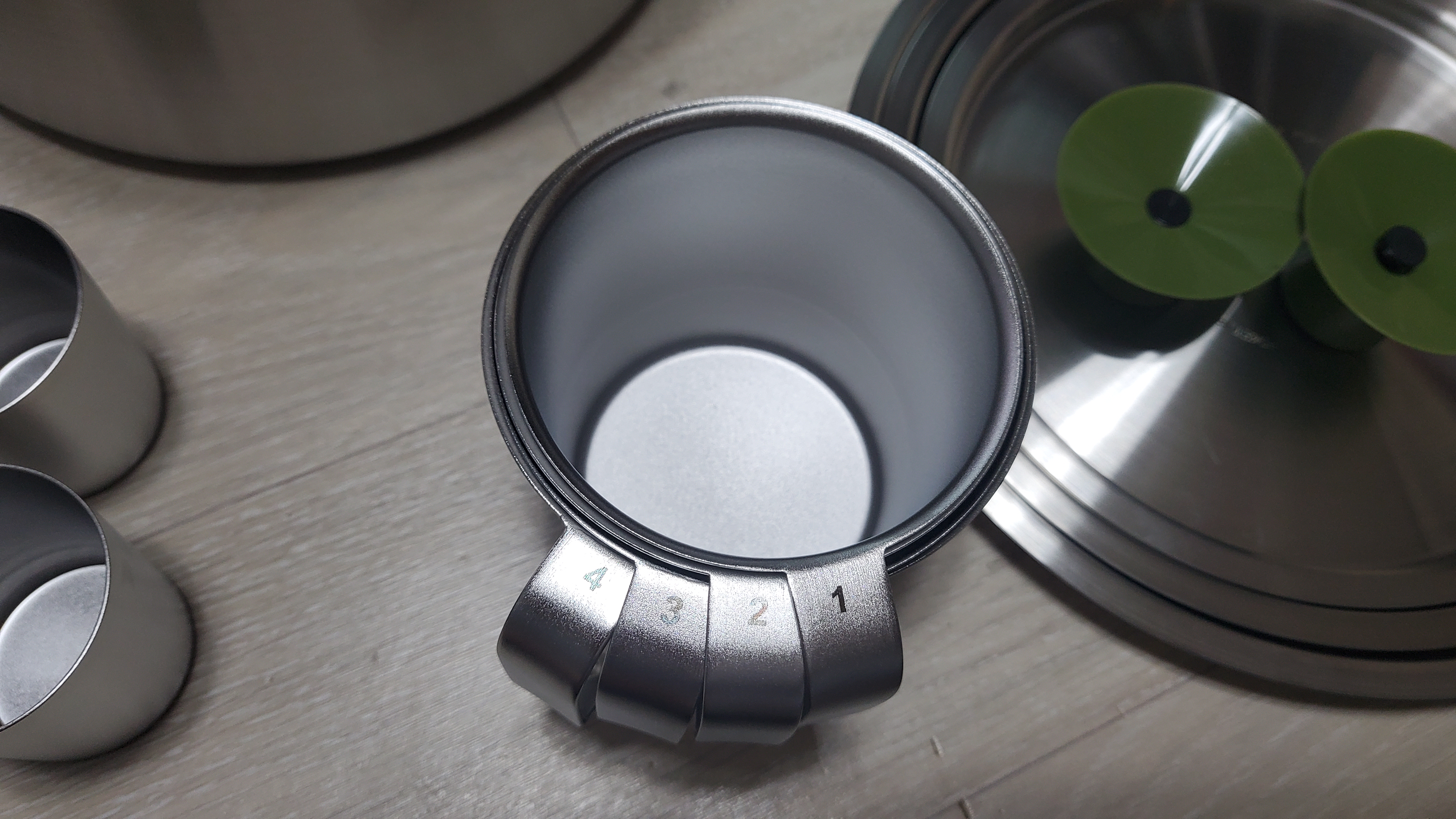 위에 뚜껑부분을 열면... 이렇게 수납이 된다. 문제는 냄비 안에꺼를 꺼내는게 편하지 않다... 거의 뒤집다시피 해야 안에 작은 냄비를 꺼낼 수가 있어서... 필요한 구성품만 꺼내 쓰기엔 조금 불편할 수도 있을 것 같다. 그래도 미니멀하게 모든걸 하나 안에 넣는다는게 장점인데 뭐 그정도 수고로움은 감당해야지 ㅎㅎ