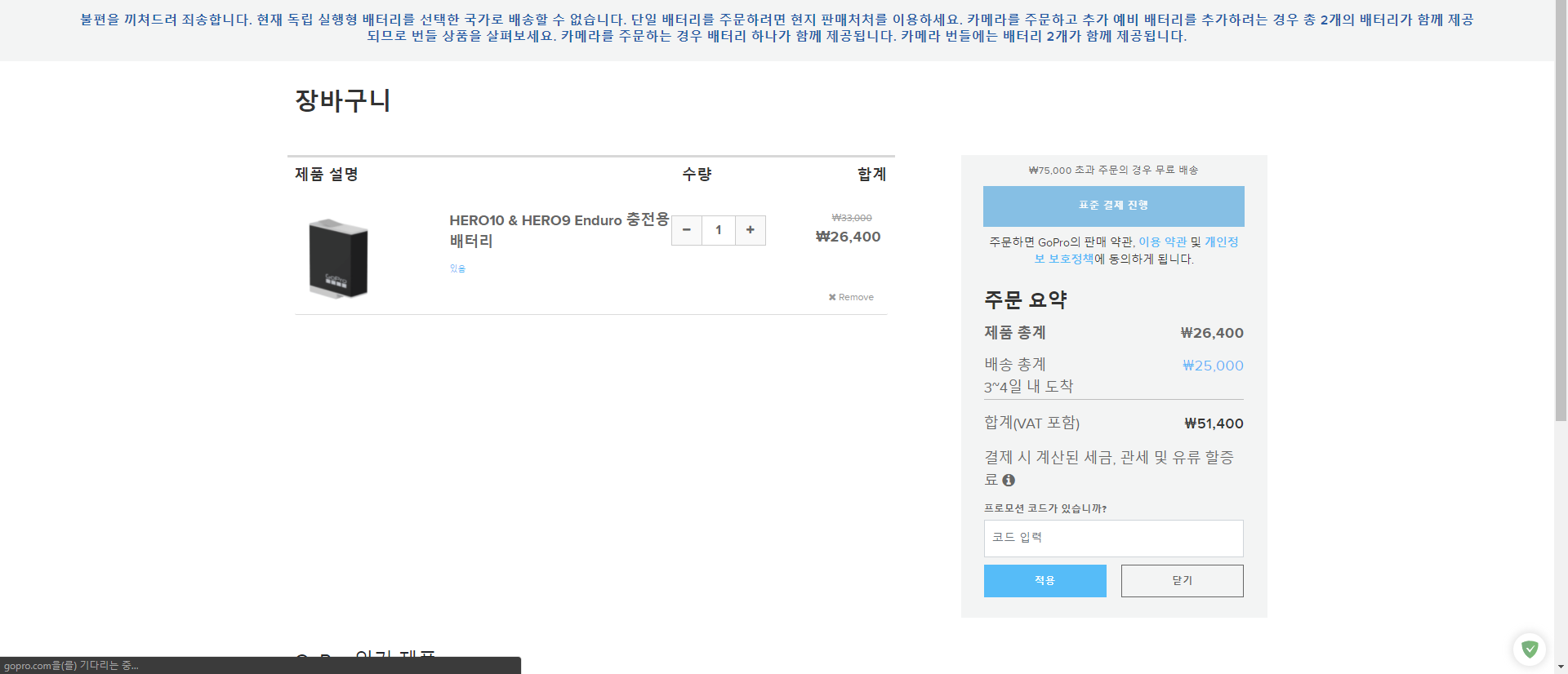 2개는 구매 가능. 그래서 결심... 고프로를 하나 더 사자(재정신이냐??) 뭐 손해보고라도 하나는 팔아야지 ㅠㅜ