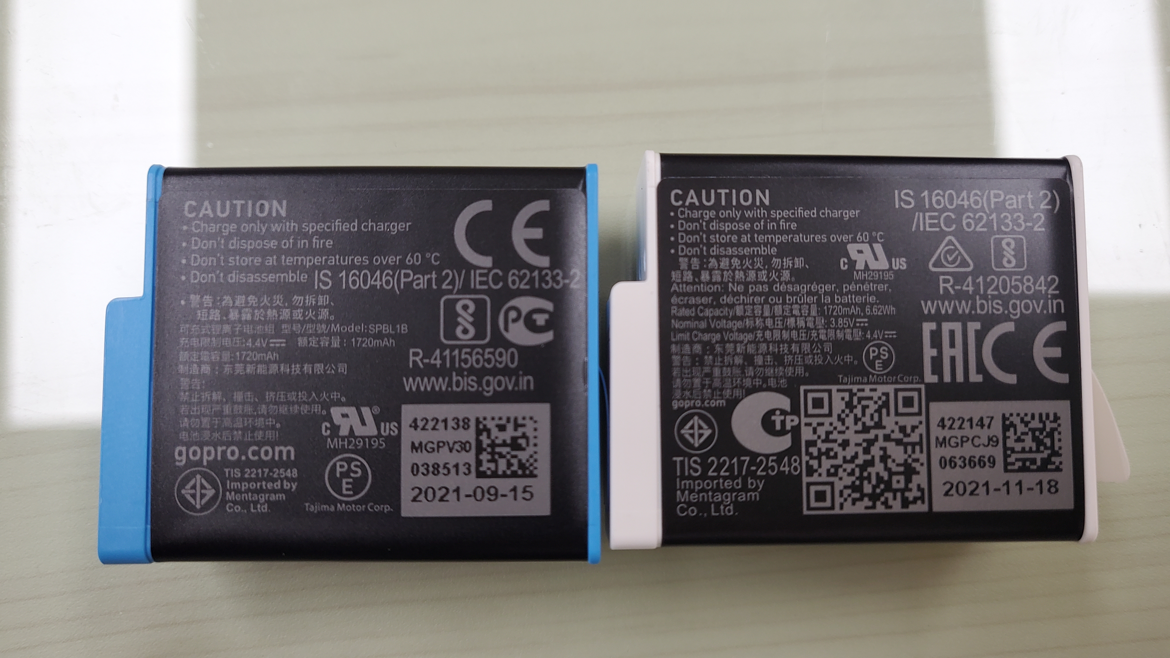 이렇게 생겼다. 보통 공홈 구매는 싱가포르에서 날아오던데, 중국 위주 제품인 듯 하다. 기존의 파란색과 다르게 하얀색 배터리. 비교를 해보자.