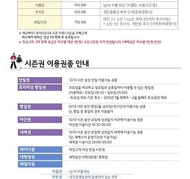 시즌권 썸네일형 리스트형 12/13 용평리조트 논스톱 시즌패스 수령! 용평리조트, 오늘부터 시즌권 수령 시작이었습니다. 잠깐 짬을 내서 마포에 시즌권 수령하러 가서 받았습니다. 발급받는데 2-3분 밖에 걸리지 않은 것 같습니다. 케이스가.. 반두평 실리콘 타입으로 바뀌었습니다. 어떻게 보면 이쁘긴 한데, 달리 보면 조금 허접해 보이기도 하네요 ㅠㅜ 늘 비슷하듯이 암밴드 스타일이구요, 연결하면 이와 같이 됩니다. 근데 개인적으로 시즌권은 다른 케이스에 넣는지라... 얘는 집에서 굴러다니게 되겠네요 ㅋ 이건 시즌권 발급받으면서 받은 쿠폰북 입니다. 쿠폰이... 어떤지 모르겠네요. 예전보다 더 허접해지는 것 같기도 하고, 일단 쿠폰북 내용은 이렇습니다. 1. 타워콘도 18Type 객실 우대 이용권 (개장일~2013.06.30, 토/일 및 공휴일 전일 제외) 1매 2. 객실 50.. 더보기 12/13 용평리조트 시즌권 구매 사진은 대강 임시로... ㅋ 시즌권 구매 완료! 남은건 시즌방 및 보드복, 바인딩, 부츠... ㅠㅜ 12/13 시즌도 용평에서 만나요~ 더보기 12/13 대명 비발디파크 시즌권 1차 판매 더보기 12/13 용평리조트 시즌권 1차 특가 판매 정보 용평 시즌권 1차 특가 판매 시작합니다. 기간: 8월 30일부터 9월 10일까지(11일간) 기본(리프트, 곤돌라 통합) 패키지 - 37만(소인 28만) 논스톱(기본 패키지 + 시즌 셔틀버스) 패키지 - 45만(소인 43만) ; 소인은 좀 심하네요 ㅡㅡㅋ 패밀리(소인 1인 이상, 기본 패키지만) 3인 패키지 - 84만 패밀리(소인 2인 이상, 기본 패키지만) 4인 패키지 - 96만 초심스페셜 - 20만(대,소인 구분 없음) ; 초보 슬로프(메가그린, 뉴옐로우, 옐로우, 핑크 슬로프 한정) 초심스페셜은 추가금 내고 기본패키지로 업그레이드할 수 있는 걸로 알고 있구요, 지난 시즌에 시즌권 구매했던 분들은 2년차 2만원, 3년차 3만원 할인 혜택이 있습니다. 30일 이후 용평리조트 홈페이지(http://www... 더보기 이전 1 다음